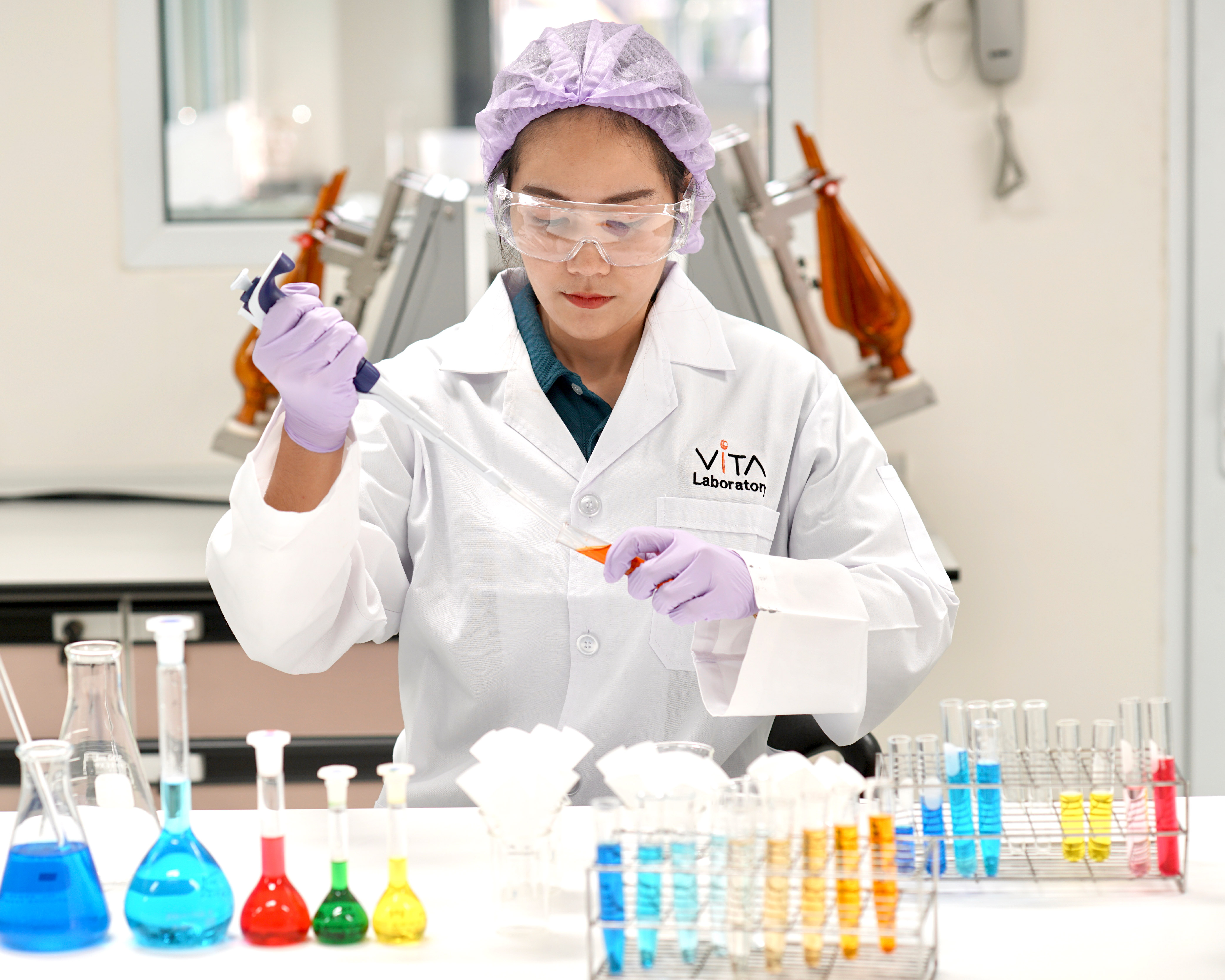 Vita utilizes advanced technology in the manufacture of Animal Nutrition additives namely vitamin premixes, mineral premixes and Choline Chloride powder. Additionally VITA production process is operated under strict conditions complaint with ISO 9001, GMP, HACCP, and FAMI-QS certification. Nowadays, our plant is able to produce 5,000 MT of both Premix and Chlorine Chloride productions. We also have OEM facility for Brand owners and repackage products under Food grade condition and be able to obtain food grade certification for all products.